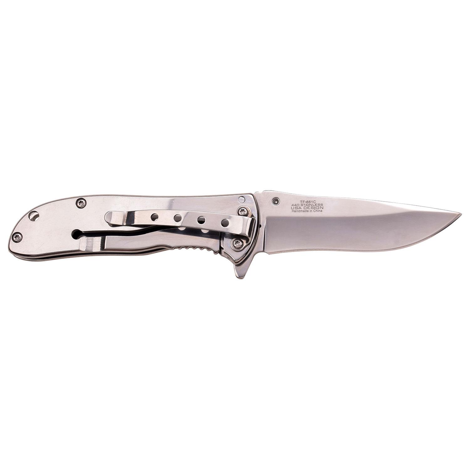 SPECIAL FEATURES: Manual Folding, Finger Flipper, Frame Lock, Mirror Polished Stainless Steel Handle with Pocket Clip.